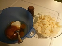 2)      In der Zwischenzeit die Birnen schälen und in kleine Stücke oder Scheiben schneiden.